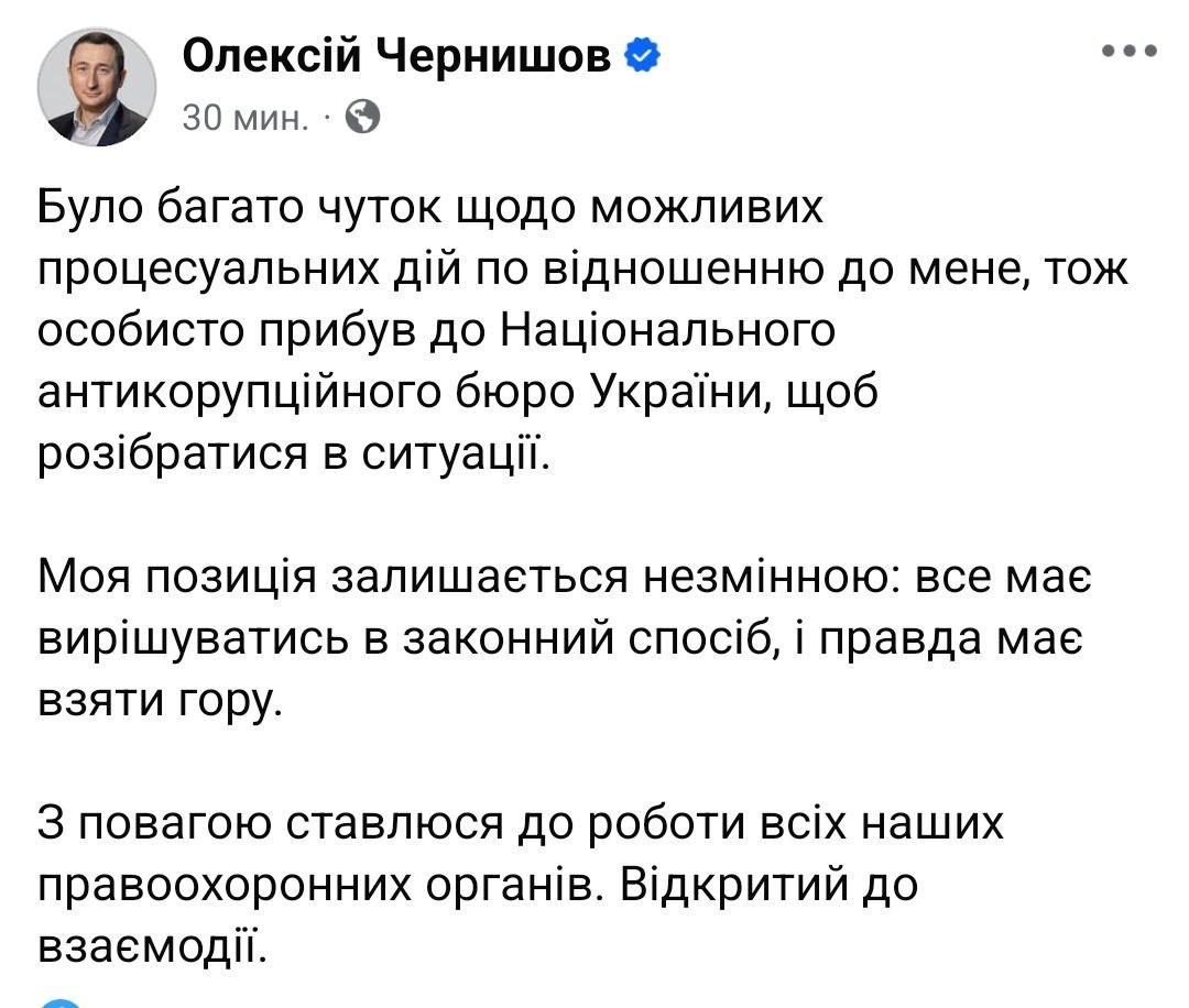 Чернышов прибыл в НАБУ, "чтобы разобраться в ситуации"