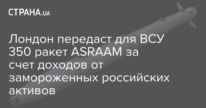 Великобритания передаст Украине 350 современных ракет ASRAAM, предназначенных для ПВО. Это будет первая поставка Лондоном военной помощи по программе ERA, то есть за счет доходов от замороженных российских активов.