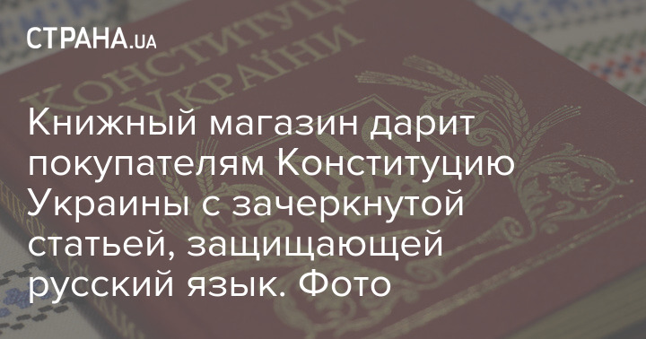 Книжный магазин дарит покупателям Конституцию Украины с зачеркнутой статьей, защищающей русский язык. Фото