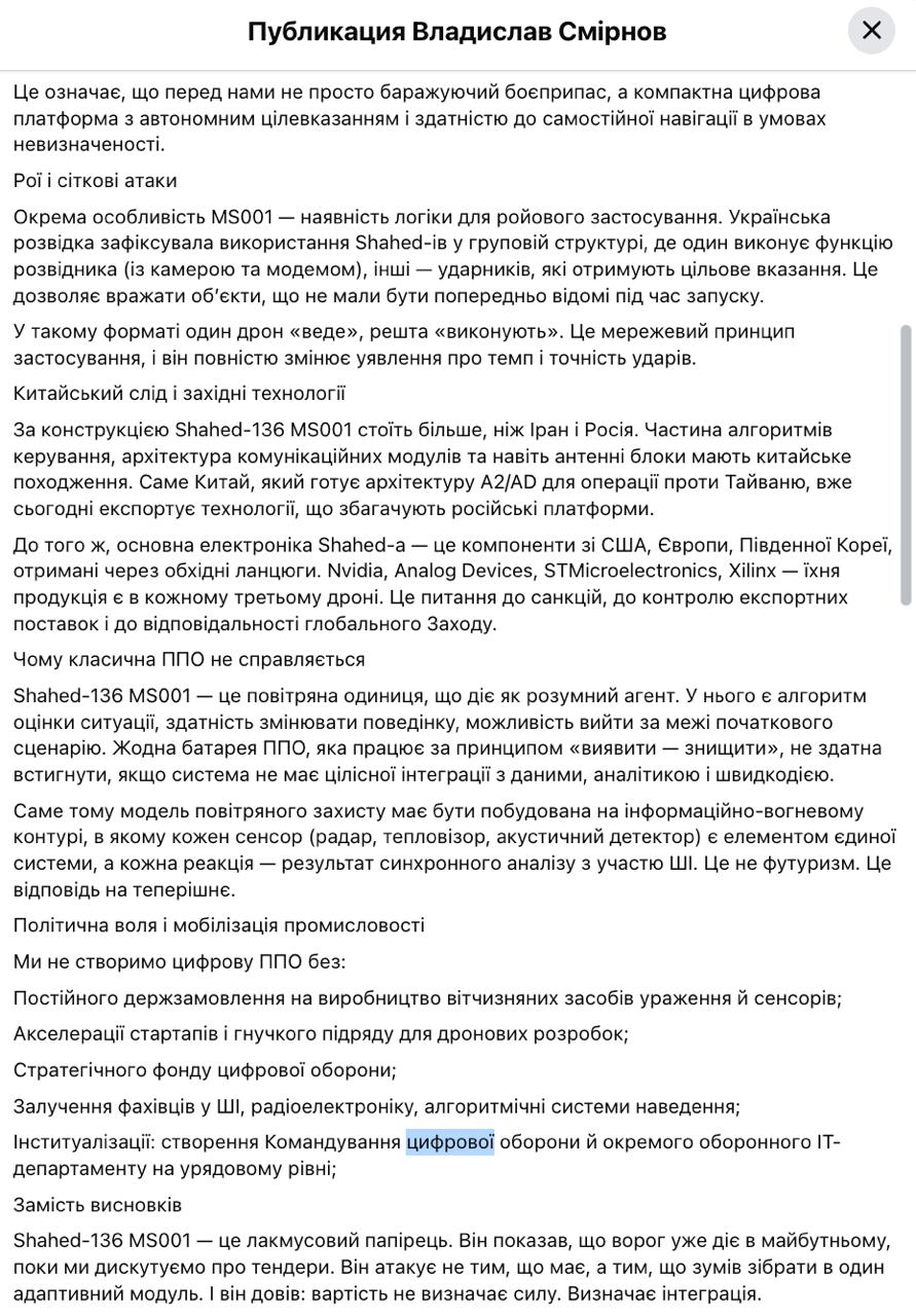 "Дрон видит, анализирует, принимает решение и атакует без внешней команды", - пишет Смирнов.