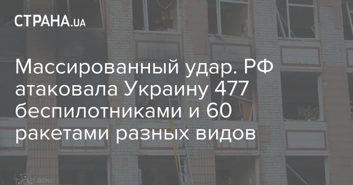 Массированный удар. РФ атаковала Украину 477 беспилотниками и 60 ракетами разных видов