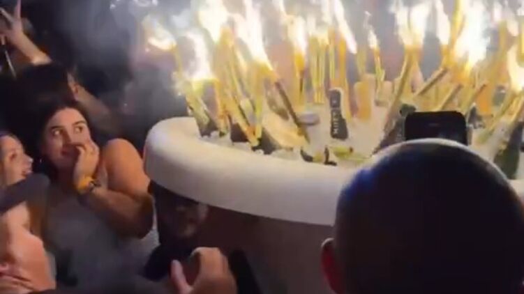 Отметим, что стоимость бутылки такого шампанского стартует от 2000 гривен. В ролике можно заметить десятки бутылок.