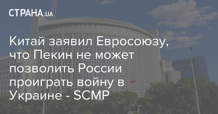 Китай заявил Евросоюзу, что Пекин не может позволить России проиграть войну в Украине - SCMP