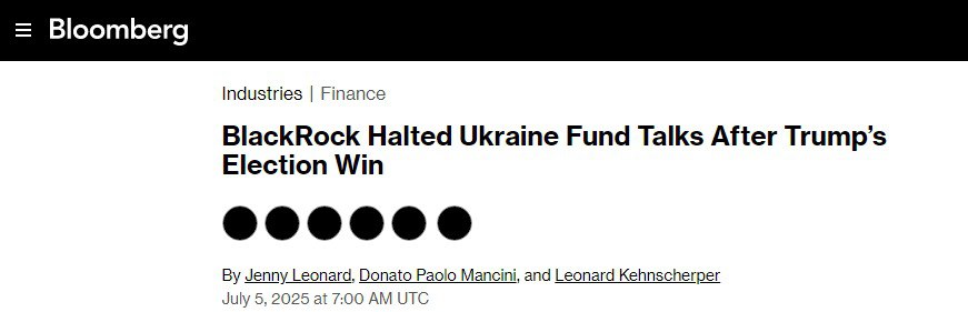 Американская корпорация BlackRock перестала искать инвесторов для финансирования фонда восстановления Украины в связи с приходом к власти Дональда Трампа и его недовольства Киевом. Это произошло еще в начале года.