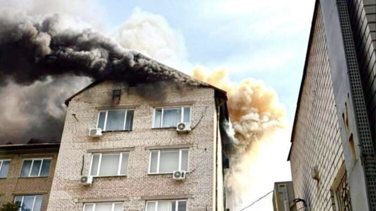 Кадры горящего университета в Запорожье после прилета БпЛА. Фото: Telegram