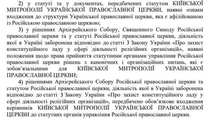 Согласно недавно вступившему в силу закону такие выводы могут лечь в основу решения о запрете Украинской православной церкви. Мы детально анализировали этот закон.