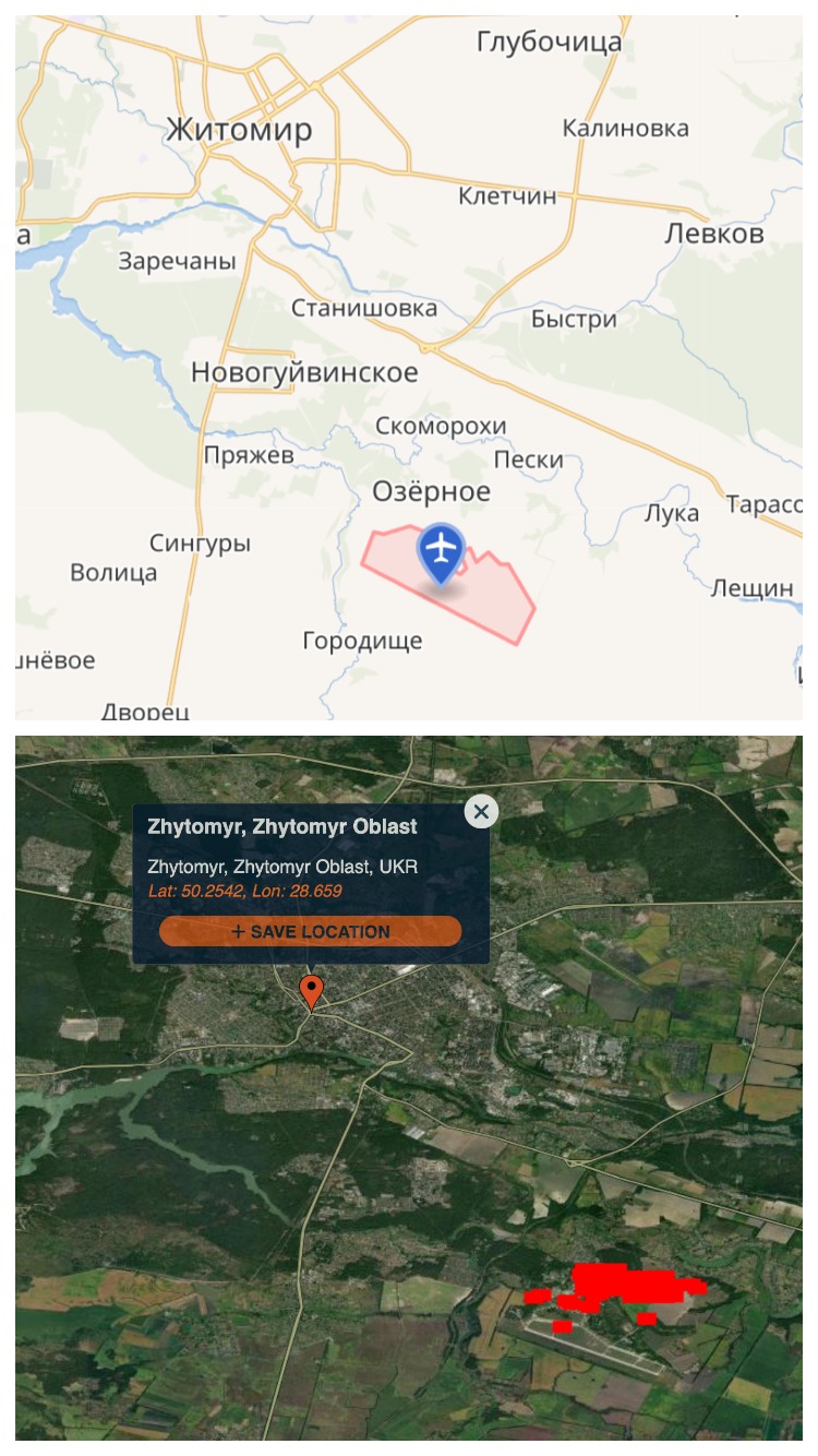 При этом российские паблики заявляют, что удар там наносился по аэродрому Озерное под Житомиром. Украина этого не подтверждала. Однако, по данным сервиса NASA Firms, именно на этом участке по карте даже во второй половине дня продолжался сильный пожар.