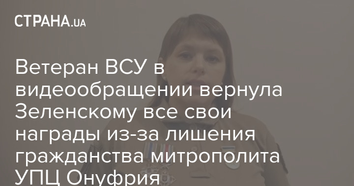 Ветеран ВСУ в видеообращении вернула Зеленскому все свои награды из-за лишения гражданства митрополита УПЦ Онуфрия