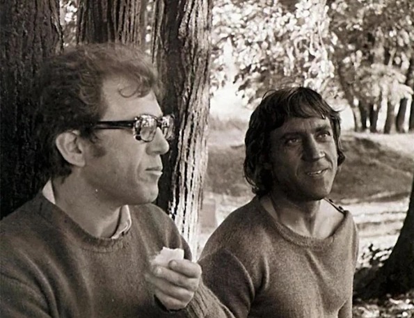 Режиссер с Владимиром Высоцким на съемках фильма "Сказ про то, как царь Пётр арапа женил"