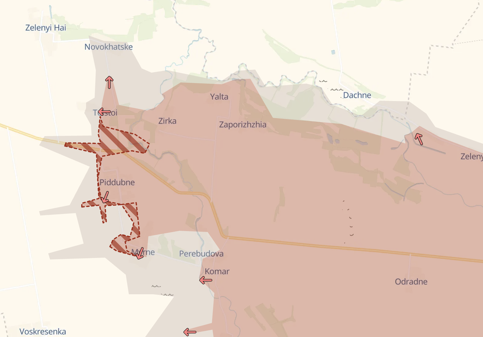 Западнее российские силы продвинулись к северо-востоку от Покровска и Мирнограда — по линии Новоторецкое – Новоэкономическое. Россияне также заняли новые позиции в районе Бойковки и в сторону села Суворово. Захвачено село Разино.