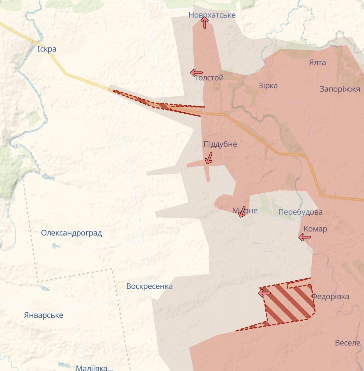 Ранее мы подводили итоги предыдущего дня. Россияне продвинулись к северу от Мирнограда, со стороны Разино, где "серая зона" подошла к городу Родинское. Также РФ снова продвинулась в Малиновке Запорожской области. На Новопавловском направлении россияне захватили село Богатырь, а также продвинулись в Алексеевке.