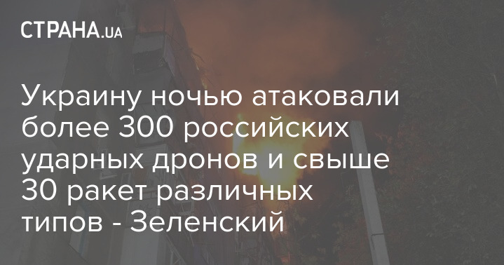Украину ночью атаковали более 300 российских ударных дронов и свыше 30 ракет различных типов - Зеленский