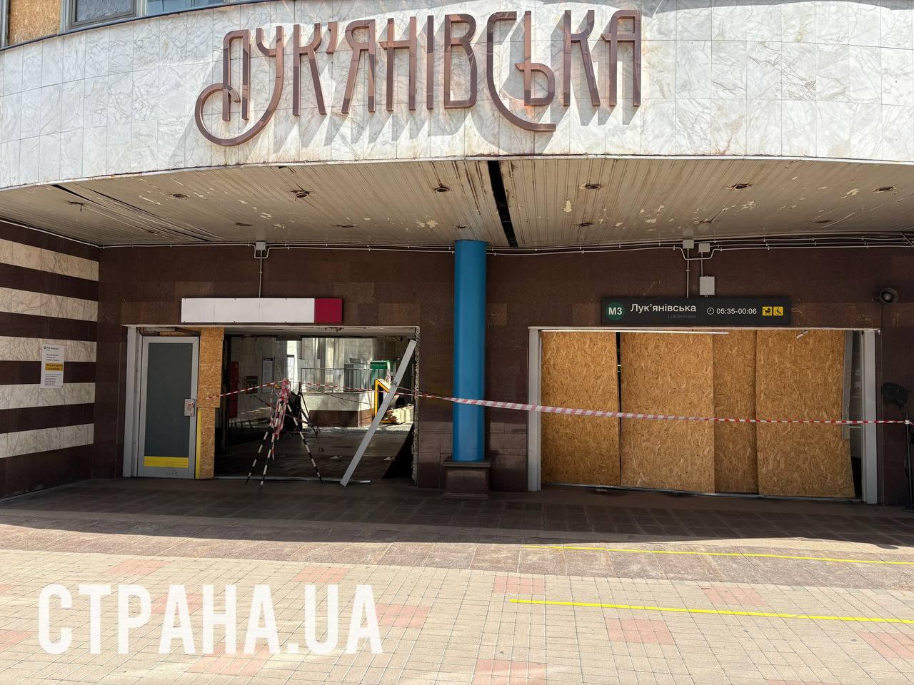 09:28 Еще видео повреждений у входа в метро Лукьяновка в Киеве.