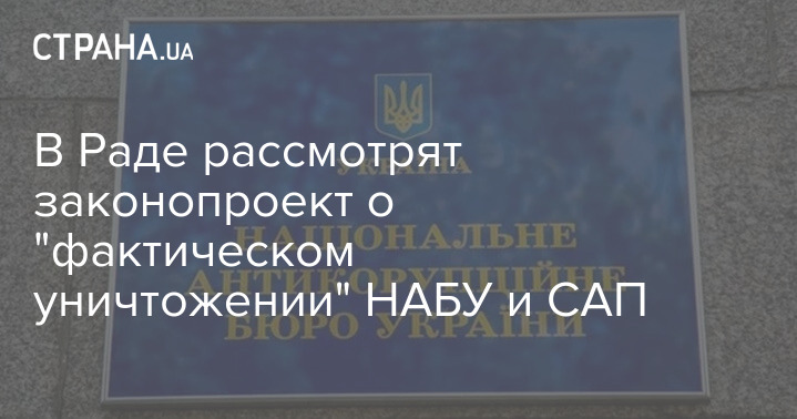 В Раде рассмотрят законопроект о "фактическом уничтожении" НАБУ и САП