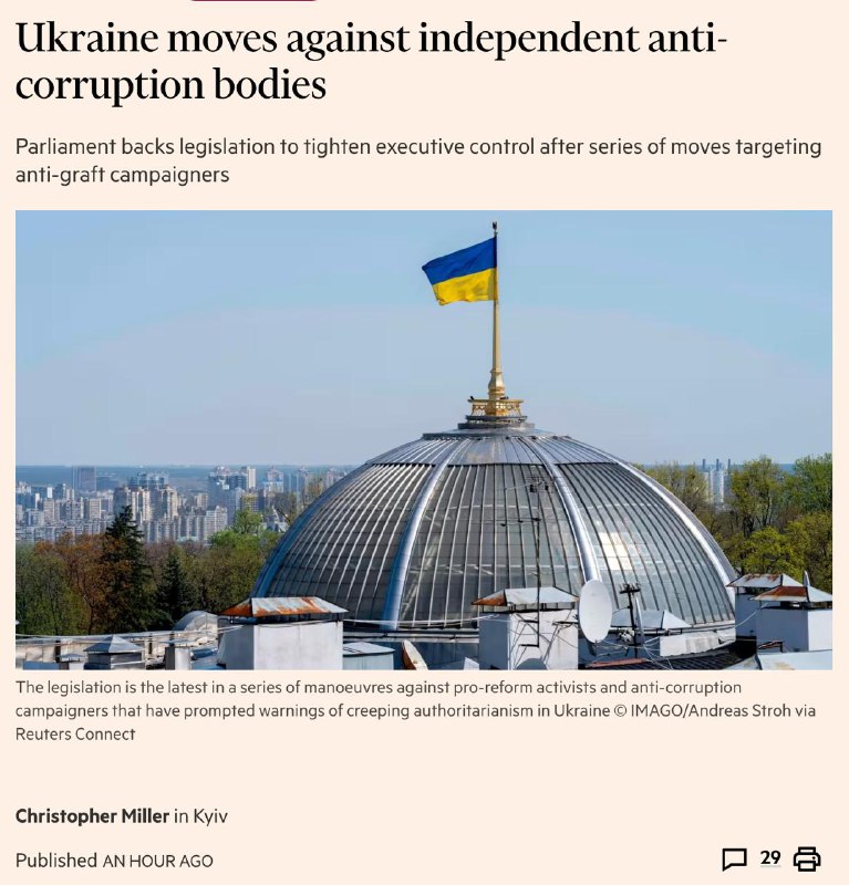 После принятия законопроекта об ограничении полномочий НАБУ западная пресса стала писать об усилении авторитаризма в Украине.