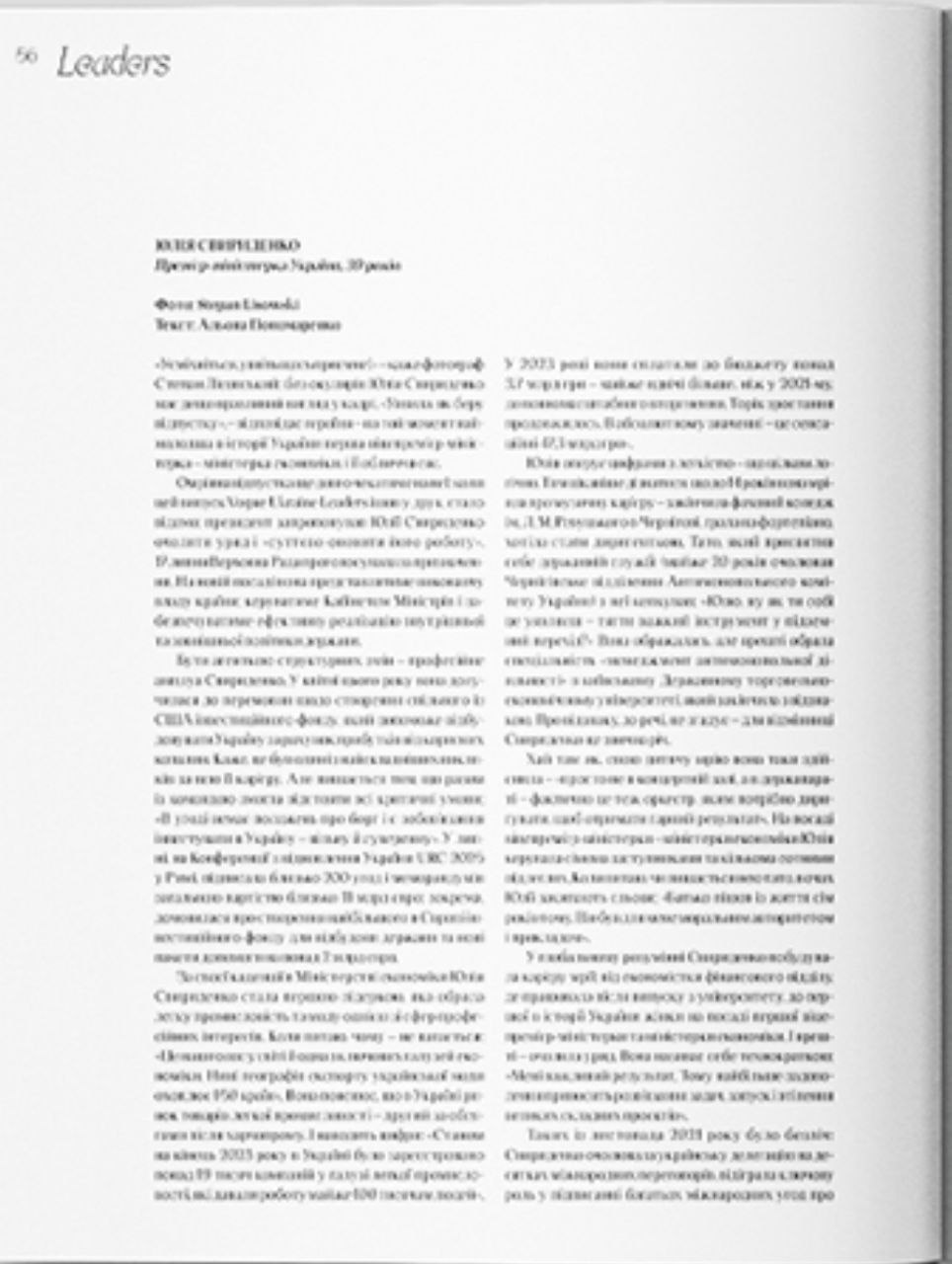 Также там вышла статья о ней под плашкой "Лидеры".