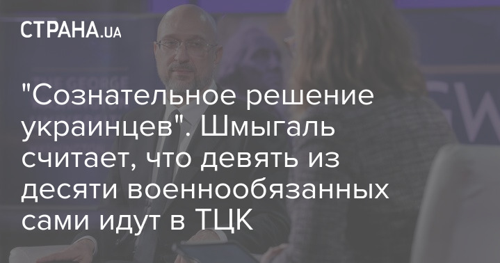 "Сознательное решение украинцев". Шмыгаль считает, что девять из десяти военнообязанных сами идут в ТЦК