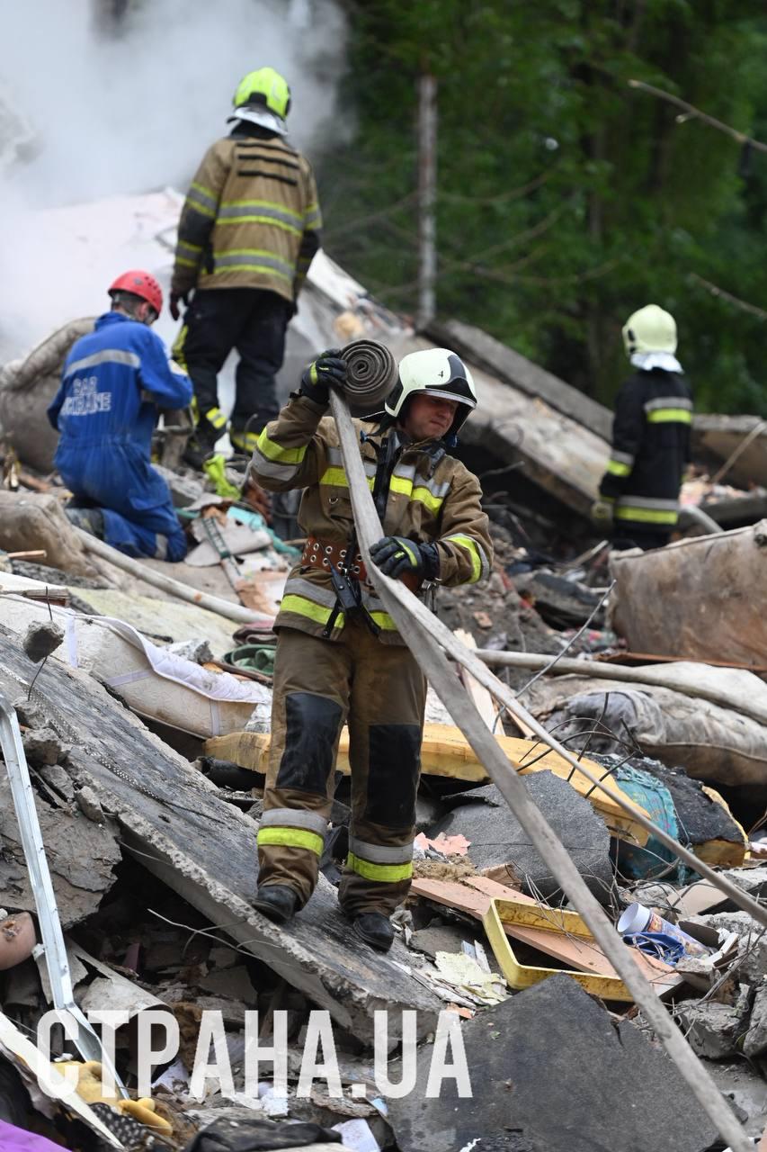 9.07 В обрушившейся части жилого дома в Киеве на нижних этажах всё ещё остаются заблокированные люди. Сейчас спасатели пытаются достать их из-под завалов.