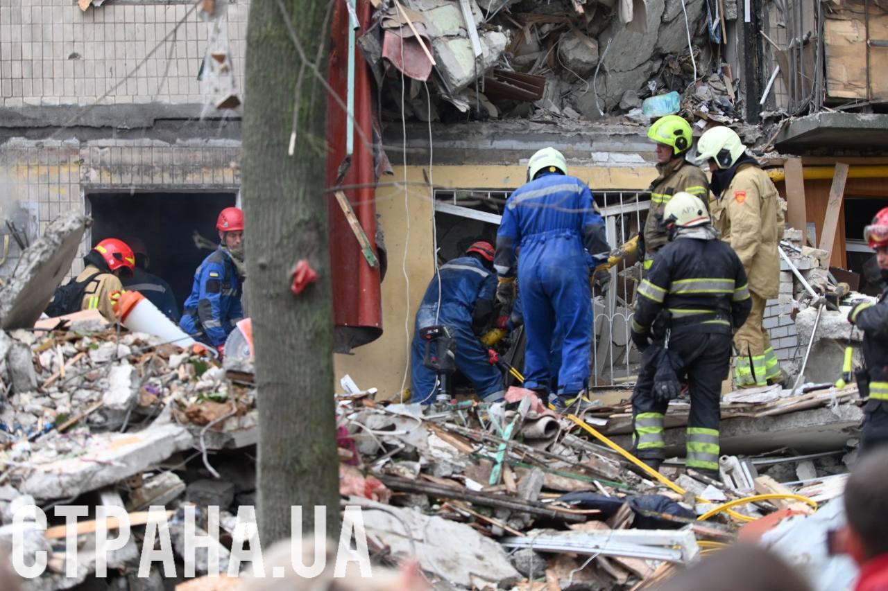 Четверо погибли в Святошинском районе, где обвалился подъезд многоэтажки. Ещё двое - в Соломенском районе.
