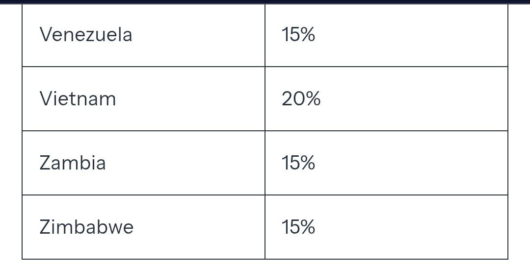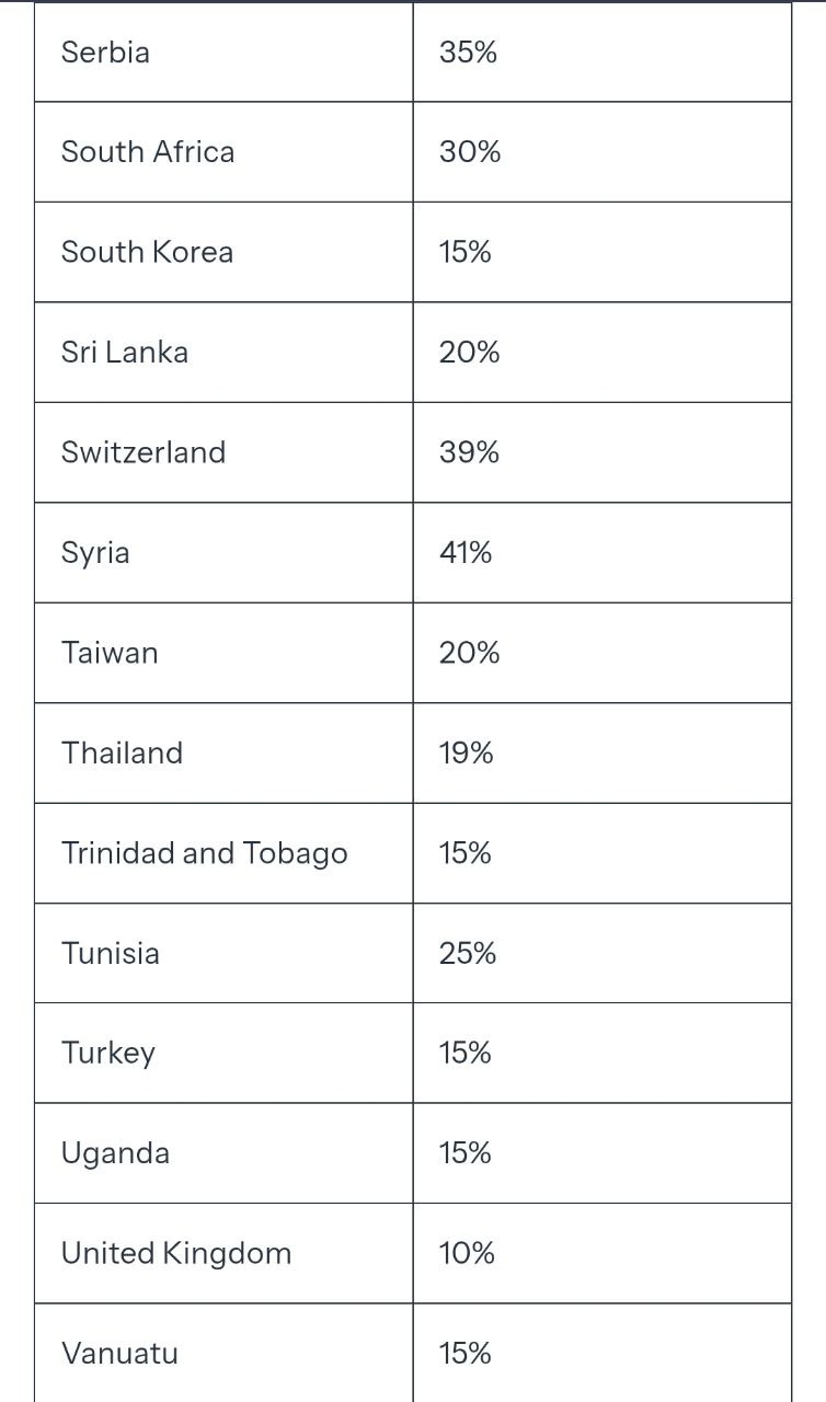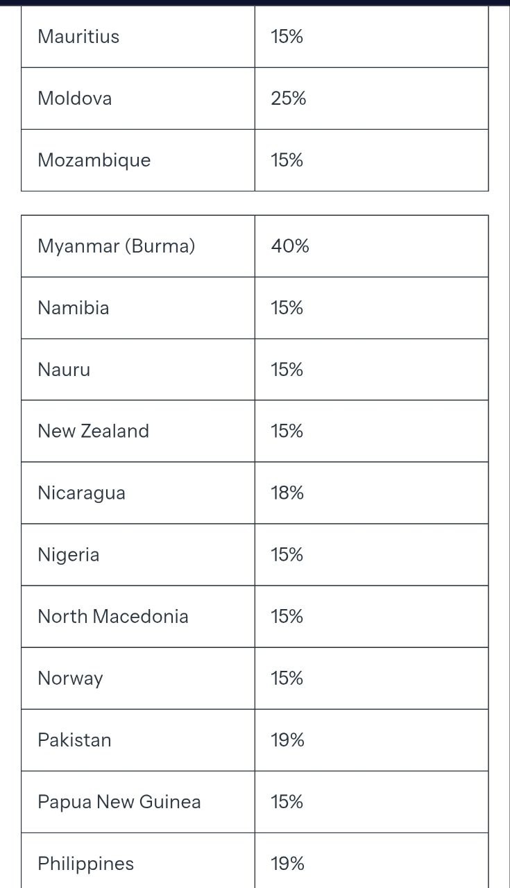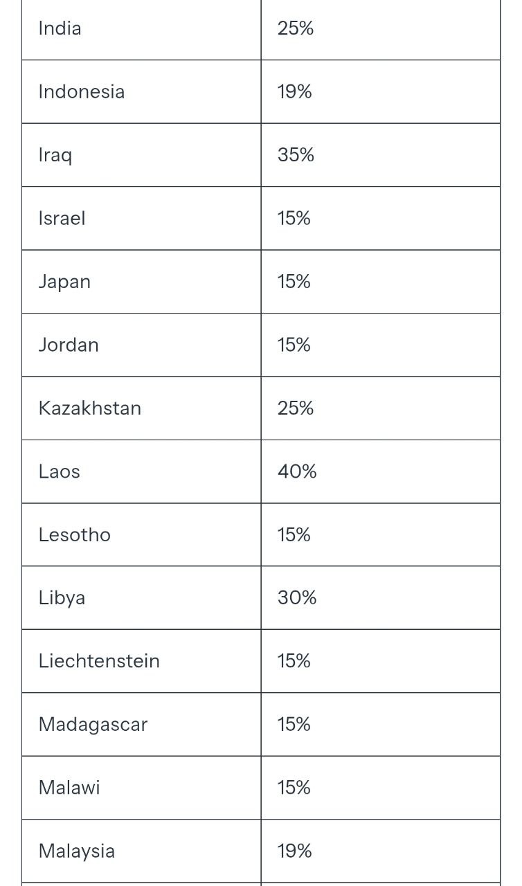 Самые высокие пошлины получила Сирия - 41%, Лаос и Бирма - по 40%. Самые низкие - 10% у Британии.
