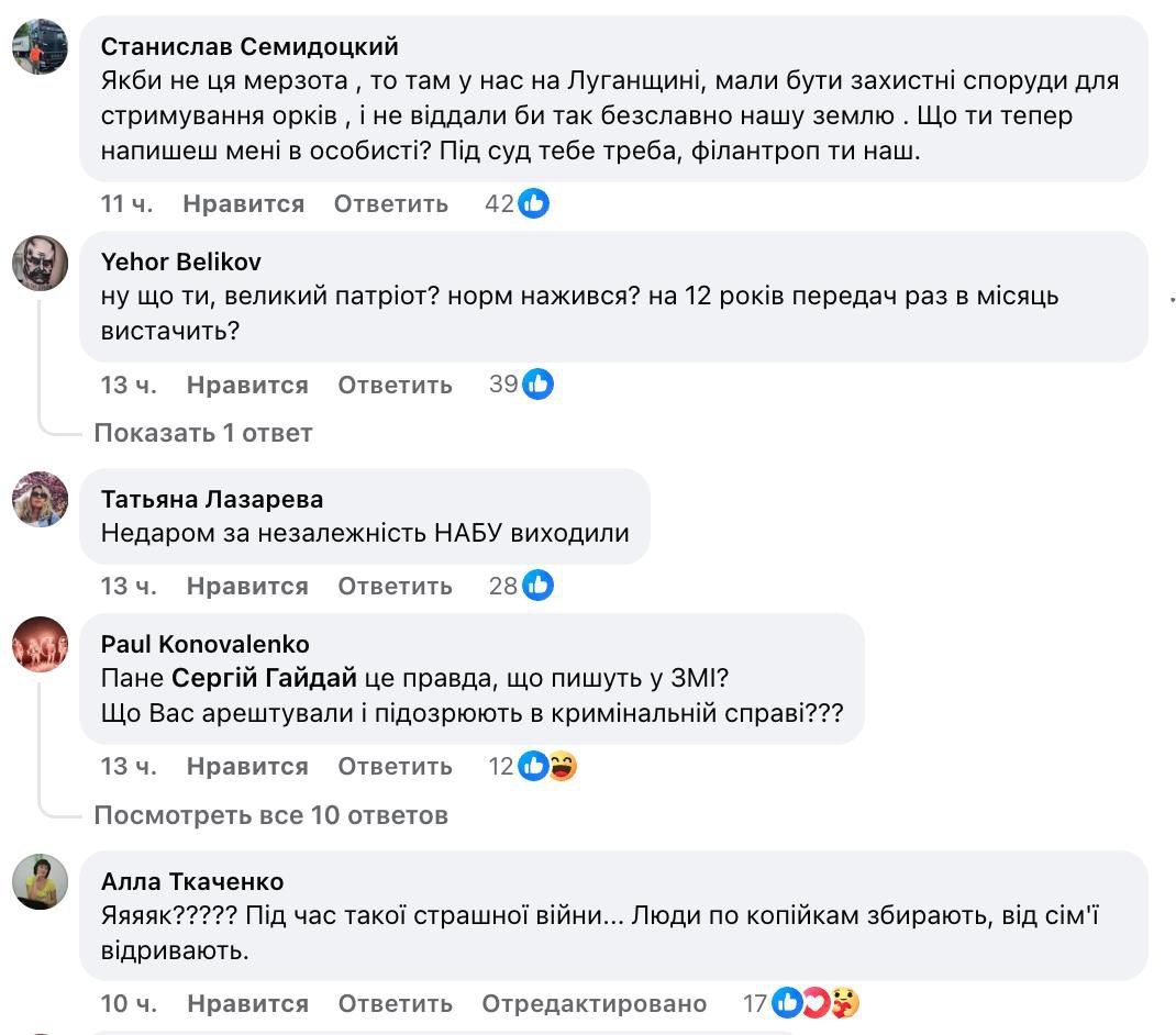 В комментариях к этой публикации после задержания Гайдая и Кузнецова оставили массу негативных отзывов.