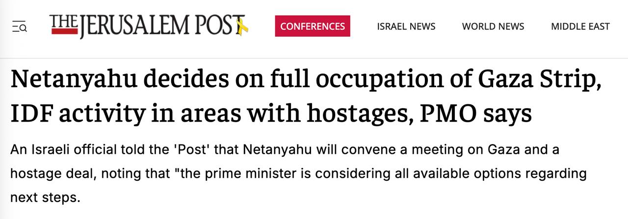"Жребий брошен: мы идем к полной оккупации сектора Газа", - сказал близкий к Нетаньяху чиновник.