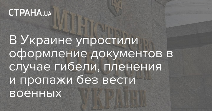 Министерство обороны Украины в рамках усовершенствования системы защиты прав военнослужащих и их семей упростило документальное оформление случаев смерти и гибели, захвата в плен, пропажи без вести военных во время боевых действий.