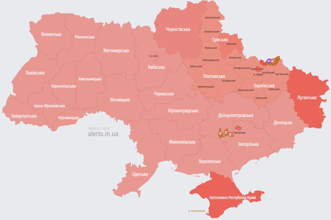 19.23 Тревога в Киеве и ряде областей.