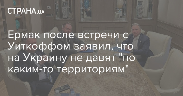 Глава Офиса президента Андрей Ермак после встречи со специальным представителем президента США Дональда Трампа Стивеном Уиткоффом заявил, что на Украину не давят "по каким-то территориям".