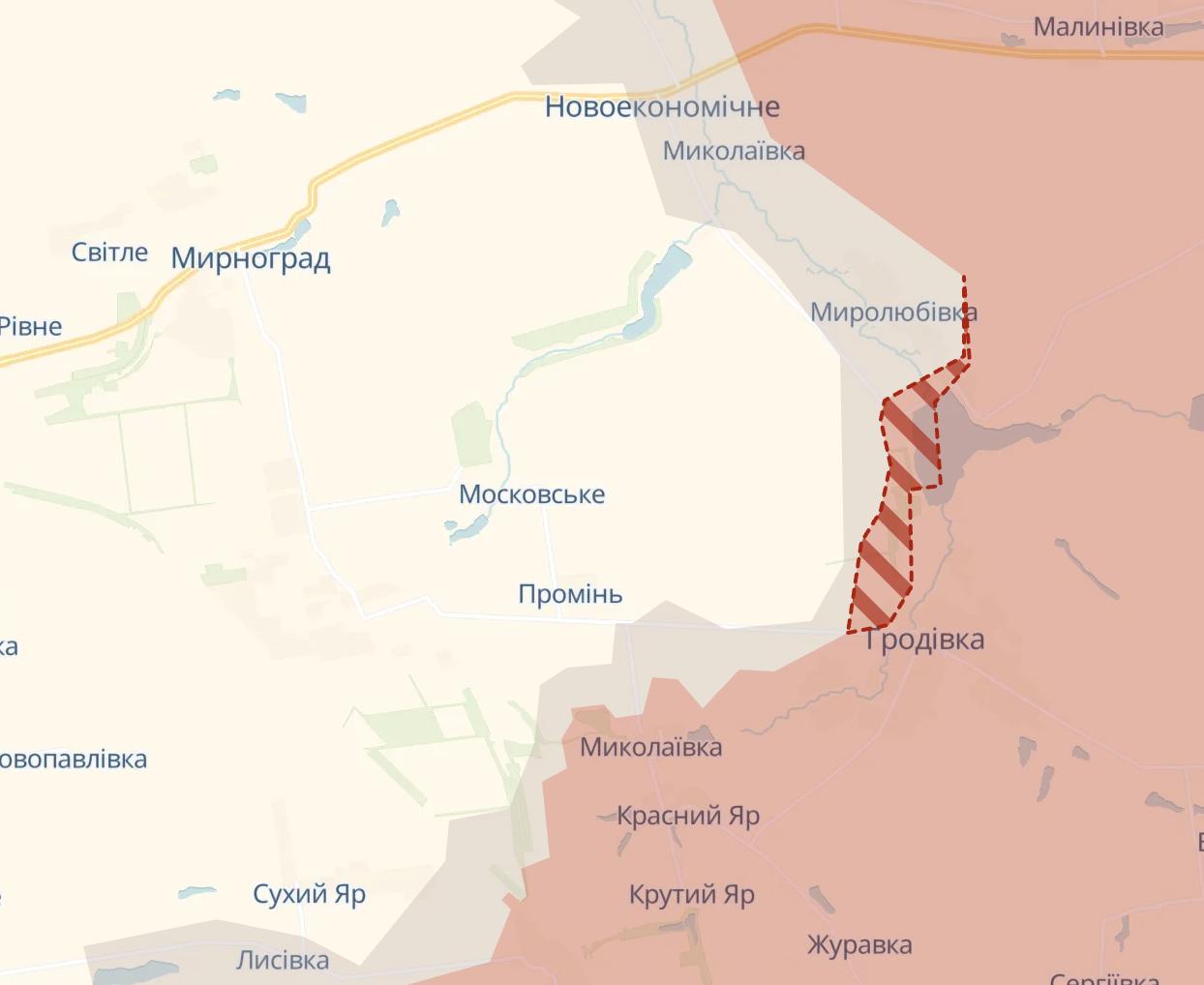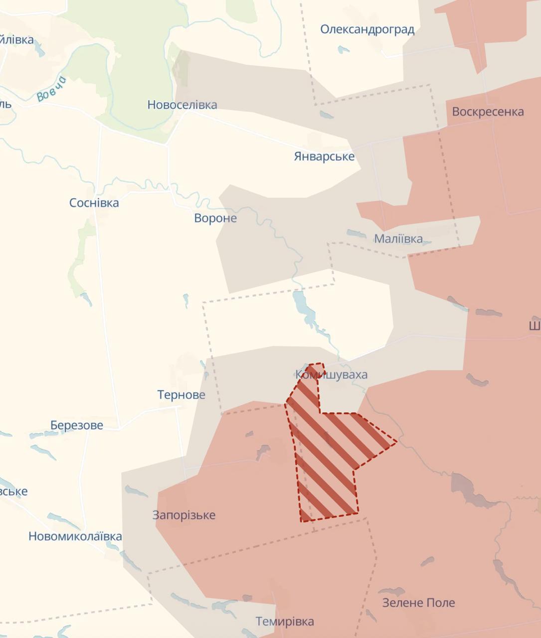 Судя по карте, серая зона у Новоселовки не уменьшилась, однако ликвидирован небольшой участок, где россияне ранее закрепились.