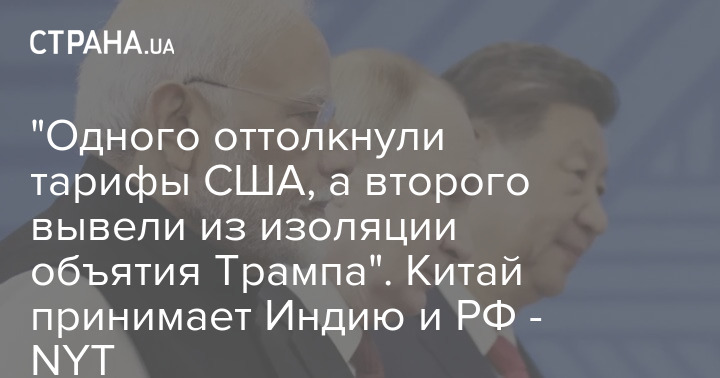 Руководитель КНР Си Цзиньпин принимает в Китае лидеров Индии и России - после того, как "одного оттолкнули от США тарифы президента Дональда Трампа, а второго вывели из изоляции его объятия". Об этом сообщает New York Times, оценивая сегодняшний саммит ШОС, куда прибыли Владимир Путин и Нарендра Моди.