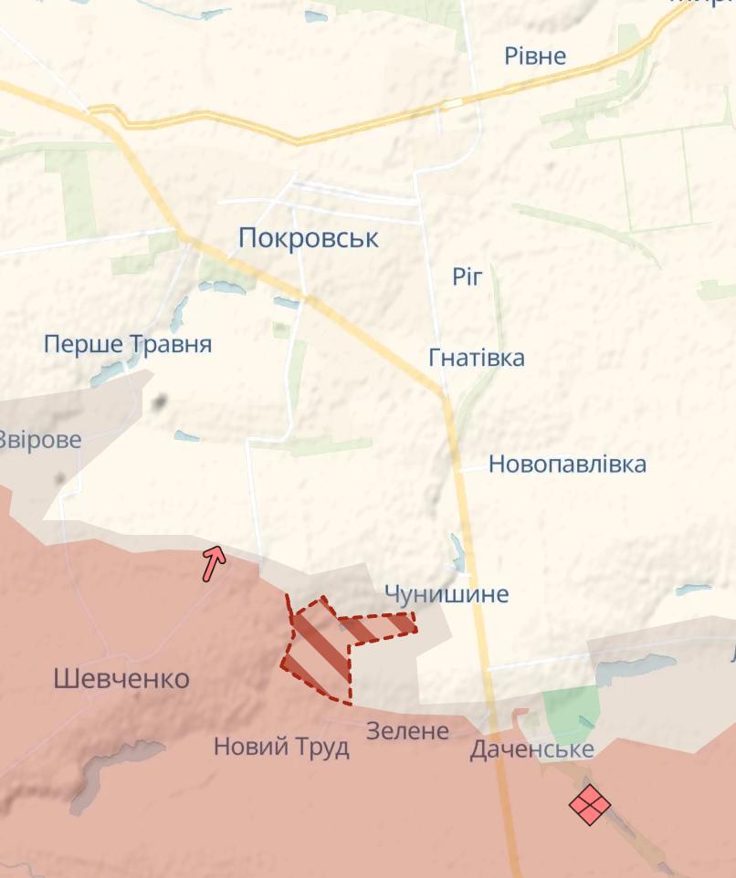 Армия РФ продвинулась к югу от Покровска в направлении Чунишино, сообщает военный паблик Deep State.
