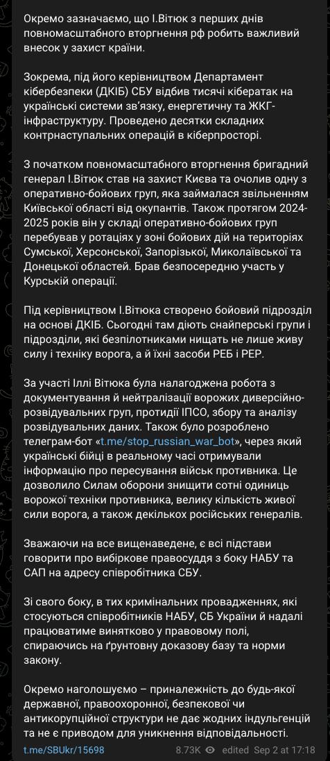 Поводом для расследования стала квартира семьи генерала, купленная якобы по заниженной цене. Однако в СБУ заявили, что следствие проигнорировало "выводы многочисленных экспертиз, которые опровергли версию о покупке жилья по заниженной цене", а также "вывод НАЗК, которое не нашло признаков незаконного обогащения в семье Витюка".