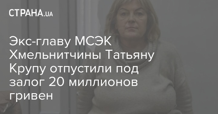 Высший антикоррупционный суд изменил меру пресечения бывшей главе медико-социальной экспертной комиссии Хмельницкой области Татьяне Крупе, подозреваемой в коррупции. Содержание под стражей ей заменили залогом в 20 млн грн.