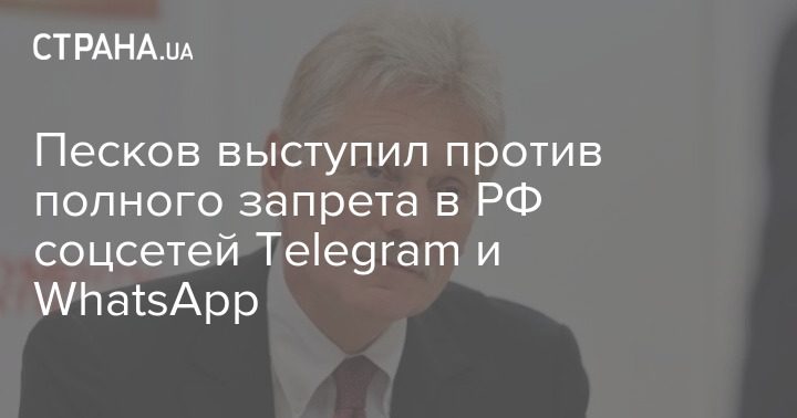 Песков выступил против полного запрета в РФ соцсетей Telegram и WhatsApp