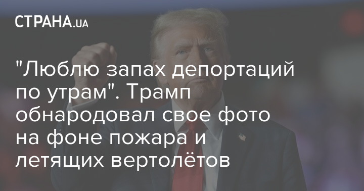 "Люблю запах депортаций по утрам". Трамп обнародовал свое фото на фоне пожара и летящих вертолётов