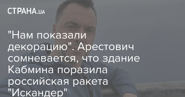 "Нам показали декорацию". Арестович сомневается, что здание Кабмина поразила российская ракета "Искандер"
