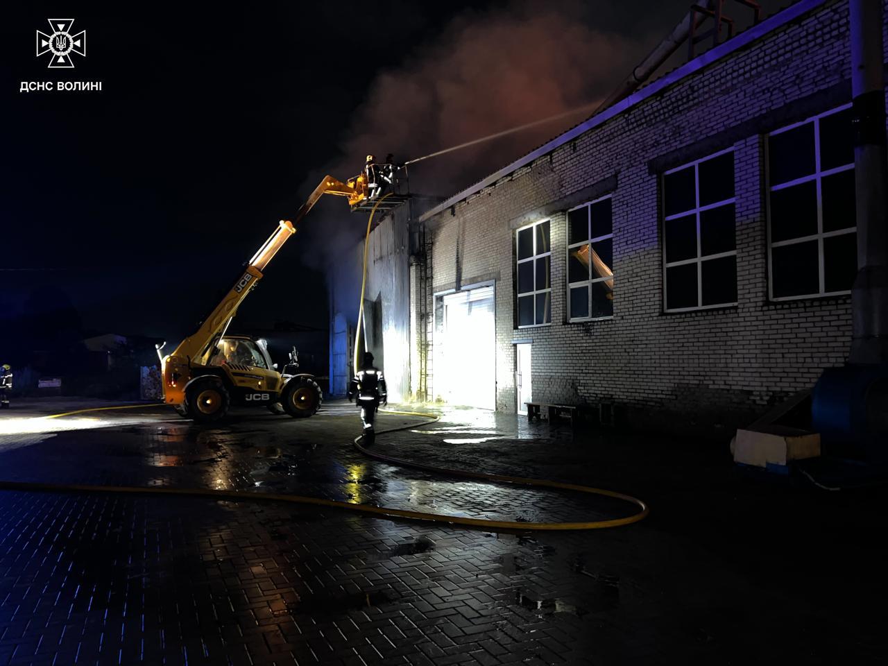 9.00 Под Луцком после обстрела загорелось предприятие в поселке Цумань. Площадь пожара на момент прибытия спасателей достигала около 1000 квадратных метров.