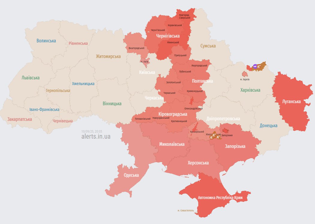 20.04 Тревога в Киеве и ряде областей из-за угрозы баллистики.