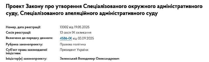 Верховная Рада поддержала в целом законопроект № 13302 о создании Специализированного окружного и апелляционного административных судов в Киеве, юрисдикция которых распространяется на всю Украину. Они должны заменить Окружной административный суд Киева.
