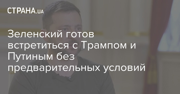 Президент Украины Владимир Зеленский заявил, что готов встретиться с главой Белого дома Дональдом Трампом и российским лидером Владимиром Путиным без каких-либо условий.