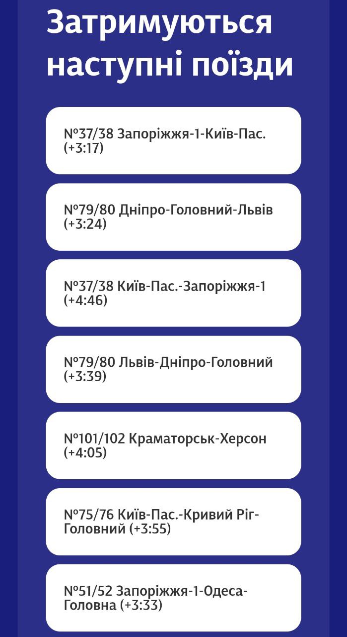 Судя по сообщению, основной удар был в районе станции Знаменка Кировоградской области - отменены или сокращены поезда, которые через неё идут.