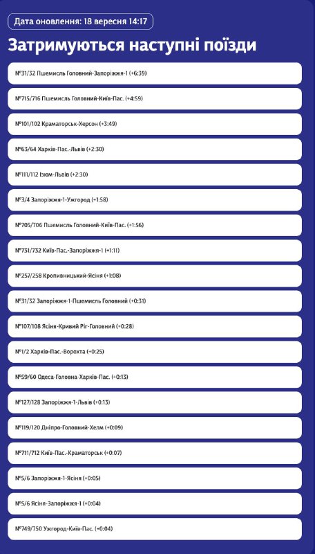 14:40 В Украине вторые сутки наблюдаются масштабные задержки поездов после вчерашних ударов по железнодорожной инфраструктуре.