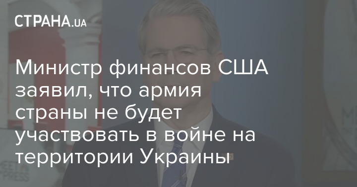 "Могу сказать одно: Соединенные Штаты не будут вовлечены войсками или чем-то подобным. Мы будем продавать европейцам вооружения, а европейцы затем могут их передавать Украине", – сказал глава американского Минфина.