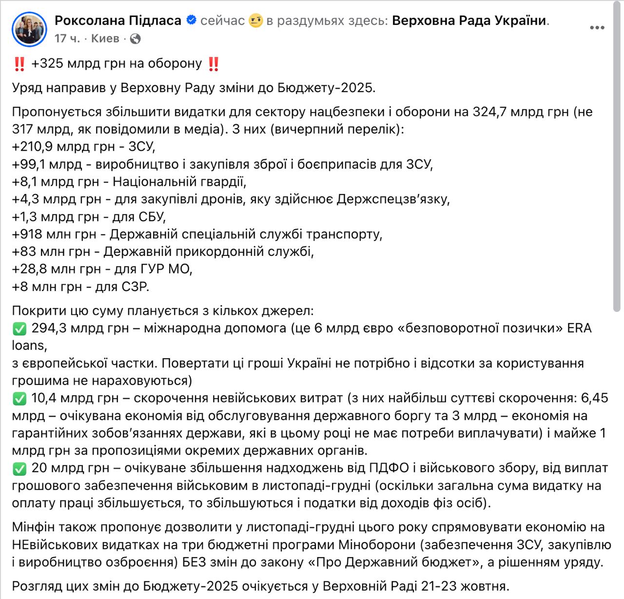 Вскоре премьер-министр Юлия Свириденко и глава комитета по вопросам бюджета Рады Росколана Пидласа раскрыли подробности, на что потратят дополнительные средства.