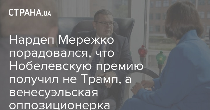 На фоне возмущения Белого дома тем, что президент США Дональд Трамп не получил Нобелевскую премию мира, глава Комитета Верховной Рады по международным делам и народный депутат от "Слуги народа" Александр Мережко поделился своей радостью, что премию получила венесуэльская оппозиционерка Мария Корине Мачадо.