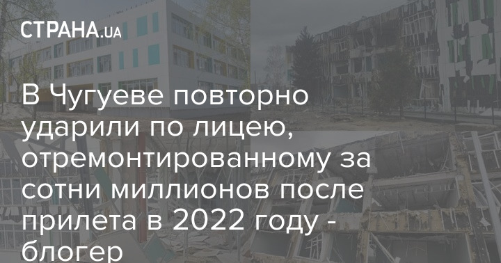 В Чугуеве повторно ударили по лицею, отремонтированному за сотни миллионов после прилета в 2022 году - блогер