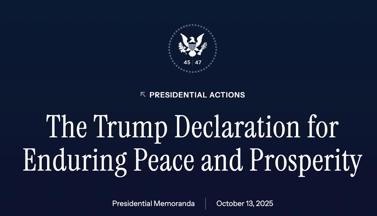 Белый дом опубликовал декларацию о завершении войны в Газе. Фото: facebook.com/DonaldTrump