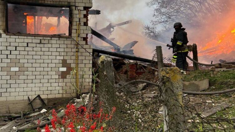 Фото (4) последствий удара по Новгород-Северскому Черниговской области - спасатели ГСЧС тушат жилой дом