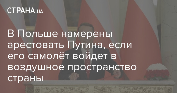 Польша готова перехватить самолет президента России Владимира Путина, если тот залетит в её воздушное пространство, чтобы потом передать руководителя РФ суду в Гааге.